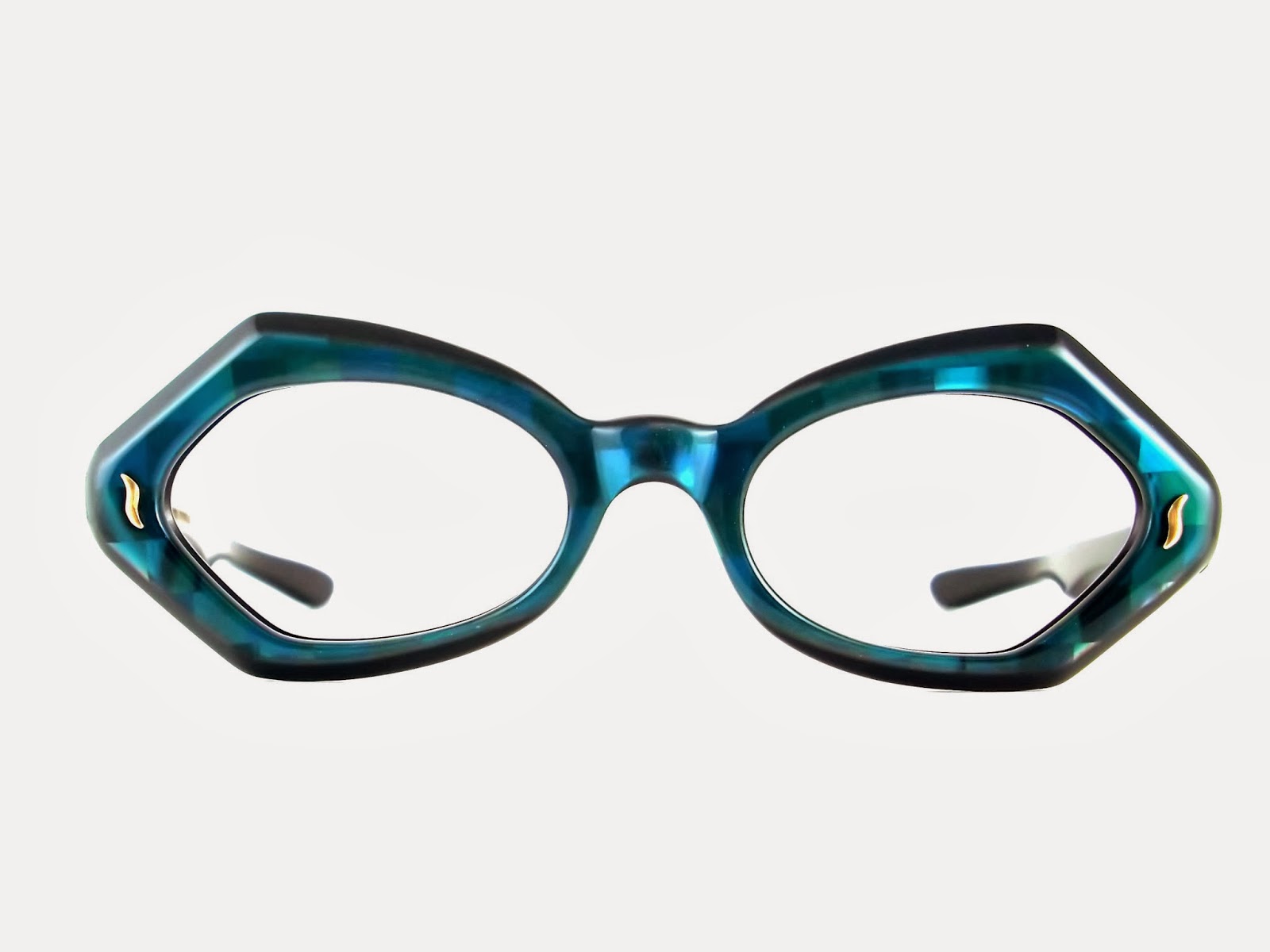 ABSOLUTELY BEAUTIFUL VINTAGE GLASSES FRAME EXTREME CAT EYE IN WHITE PEARL. DECORATED